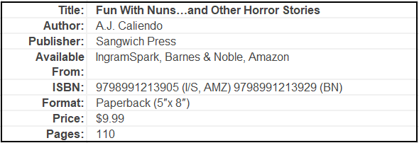 “Fun with Nuns” by A.J. Caliendo grabs you by the throat with ferocious, hilarious nostalgia, but there’s a twist – at its heart is a deeply moving story about friendship and survival.” – Lila Shaara, author of The Fortune Teller’s Daughter